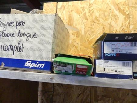Grande quantité de quincaillerie, visseries, accessoires pour châssis, etc