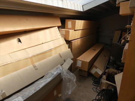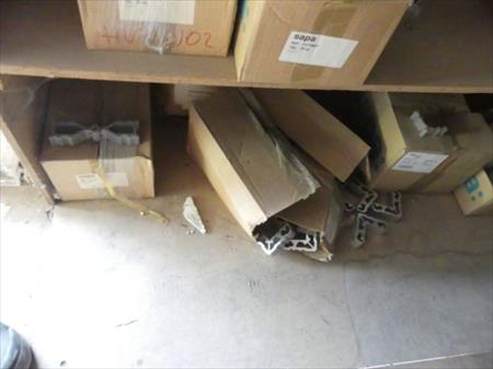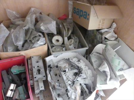 Contenu complet de la mezzanine Non inclus : lot 18 Perceuse multibroche Fapim et lot 19 3 presses emboutisseuse Tekna Composition du lot : Quincaillerie, joints, serrures, tringleries, accessoires de châssis divers, etc Remarque : Visite conseillée