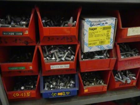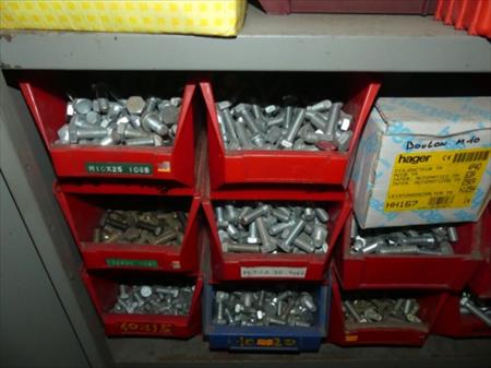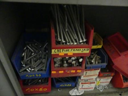Quincaillerie Inclus : Tout le contenu, bacs en plastique Non inclus : Armoire Dimensions et modèles divers Voir photos Remarques : Visite conseillée pour estimation de la quantité