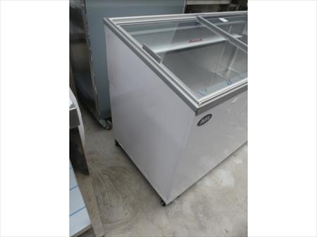 Congélateur 2 couvercles vitrés coulissants Marque : AFI Modèle : D400DFSG AF Tension : 230V Mono Longueur : 132 cm Largeur : 64 cm Hauteur : 90 cm Puissance : 320 Watts Etat : Matériel neuf Gaz r290 100gr Remarques : Présence de coups sur les parois latérales