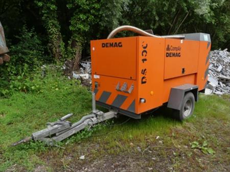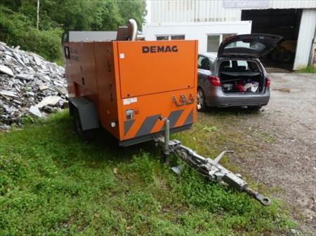 Groupe électrogène sur remorque Marque : Demag Modèle : DS100 DLT1001 Année : 1997 Heures : 2328 Longueur : 465 cm Largeur : 190 cm Hauteur : 200 cm Poids : 2300 kg Puissance : 81 kW Etat : Non testé