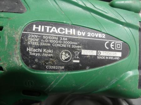 Perceuse à percussion Hitachi DV 20VB13 Marque : Hitachi Modèle : DV 20VB2 Année : 2015 Tension : 220 V monophasé Puissance : 790 W Etat : non testé