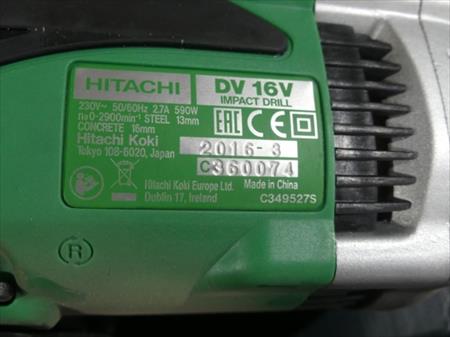 Perceuse à percussion Hitachi DV 16V Marque : Hitachi Modèle : DV 16V Année : 2016 Tension : 220 V monophasé Puissance : 590 W Etat : neuve, non testé