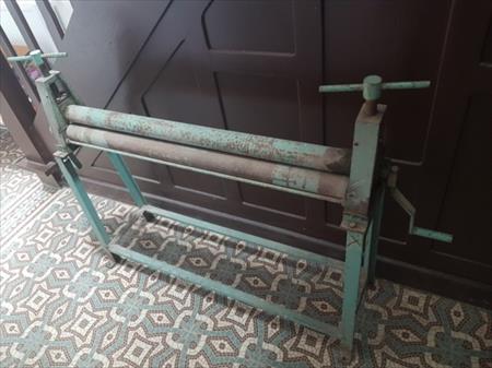 Ancienne plieuse/rouleuse à tôles dans son jus mais fonctionnelle. Rouleaux 100 cm de long. Hauteur totale 95 cm.