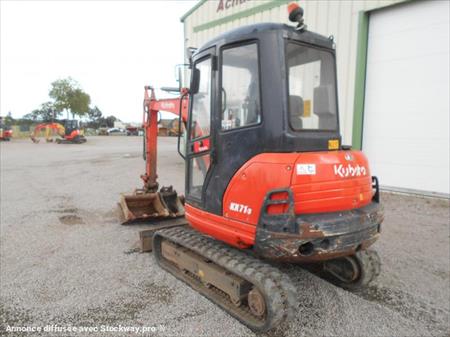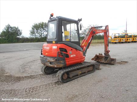 Kubota KX71-3 Numéro de stock : 5209 Marque : Kubota Modèle : KX71-3 Année : 2015 Heures : 1935 Numéro de série : WKFRGN0100Z079699 Poids : 2800kg Hauteur : 230cm Largeur : 149cm Longueur : 255cm Chenilles : Caoutchouc Usure chenille droite : 75% Usure chenille gauche : 75% Godets : 120cm / 60cm / 30cm Nombre de godets : 3 2 Vitesses : Oui Moteur : Kubota 3 cylindres Accessoires : - Ligne auxiliaire - Attache rapide sur axe Prix : 25 000 H.T (TVA à 20% récupérable pour les professionnels) Matériel vendu dans l'état. Possibilité de révision, vidange et garantie en supplément - Prix : 26 500 HT Pour plus de photos et renseignements appelez au 05 49 65 13 70. Nous sommes une entreprise spécialisée dans le négoce de matériels TP et Agricoles dans les Deux-Sèvres. Une large gamme de produits est disponible sur notre parc : Chariot télescopique et élévateur, Pelle, Dumper, Chargeuse, Compacteur, Compresseur, etc.. Nous pouvons assurer des livraisons dans toute la France. Nous vendons également des pelles de marque Kubota JCB Bobcat Hitachi Neuson Komatsu Case Takeuchi Caterpillar