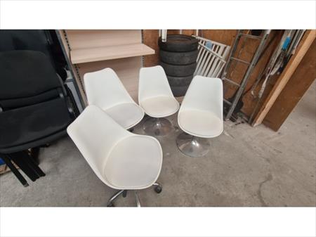 TABOURETS ET CHAISES SUR ROULETTES EN CUIR BLANC