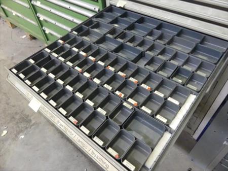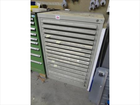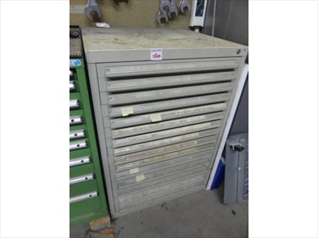 Armoire métallique 15 tiroirs Longueur : 76,5 cm Largeur : 73 cm Hauteur : 113 cm Inclus : mèches divers Lot tel que sur photos