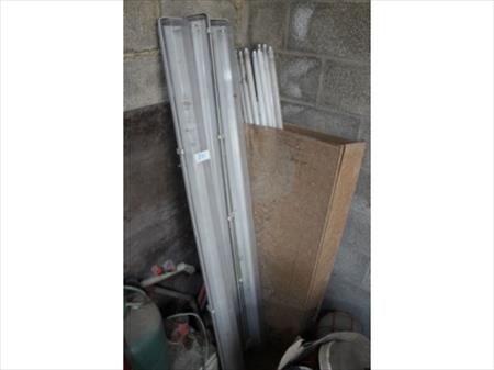 3 lampes tubes néon, 1 lot de lampes de chantier, prises électriques, allonges électriques