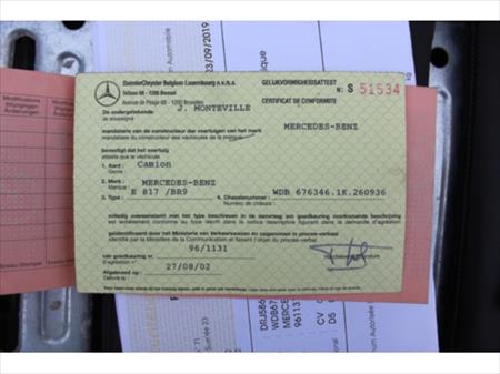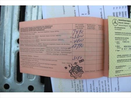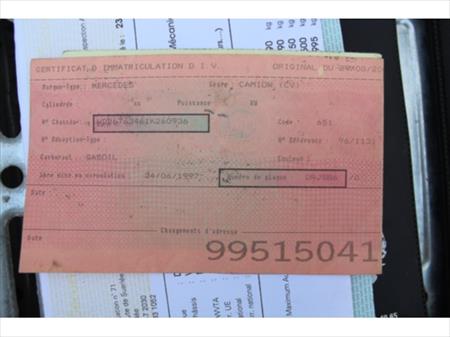 1 camion porte container MERCEDES 817 ECO POWER, immat DRJ586, vendu avec son container et son contenu, 24/06/1997, validité CT jusqu'au 02/09/2021, dernier kilométrage lors du CT du 06/01/2021 : 437,792 KM