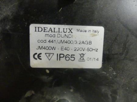 Lampe spots d'éclairage type industriel Marque : Ideallux Modèle : Dundi Année : 2014 Largeur : 49 cm Hauteur : 50 cm Quantité : 7 Etat : Testé Puissance : 400 Watts