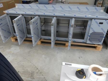 Armoire frigorifique 5 portes inox Marque : Jordao Cooling Systems Modèle : Bancada Plus 600 5P 2640 C/GP Tension : 230V Mono Longueur : 265 cm Largeur : 60 cm Hauteur : 100 cm Puissance : 450 Watts N° de série 17.54961 gaz r404a 570 gr Remarques : Groupe froid intégré