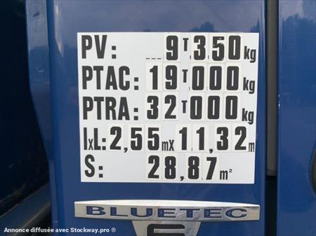 Véhicule équipé climatisation, boite auto, suspension pneumatique, vitres électrique, blocage pont , plateau 9mx2.40. Véhicule entièrement révisé et garantie 3 mois sur chaine cinématique (moteur boite et pont)