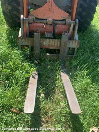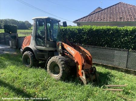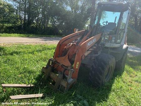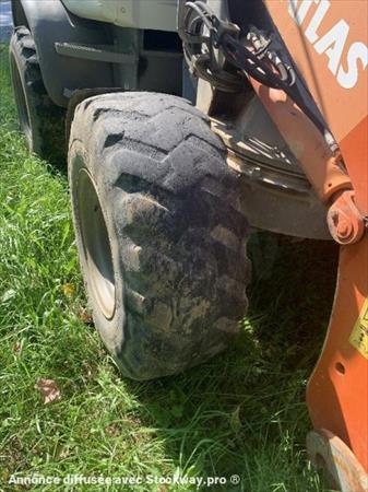 Chargeuse sur pneus ATLAS type 75S Année : 2007 Heures : 5800 Poids 5 tonnes Longueur : 5.14 m - Largeur : 1.92 m - Hauteur : 2.71 m Vitesse de déplacement 20 km/h Hauteur max. de déversement : 2.55 m Moteur Deutz typeTD2.9 L04 (54 kW) Attache rapide Godet + fourches