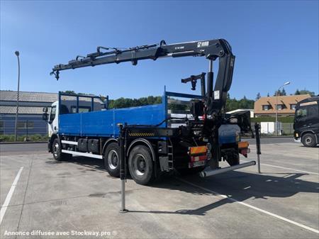 Renault Lander 380.26 Dxi 07/05/2013 196000 Kms Puissance: 380 Cv Norme: Euro 5 Carrosserie: Plateau Grue 6.80 x 2.47 Plancher bois 3 ridelles / Côtés Grue Hiab 144 3 rallonges hydraulique Radio commande Béquilles hydraulique Rotator Fourches à palettes Portéee: 10m30 Blocage différentiel Cabine courte Boîte auto Climatisation Gyrophares Viscope Radio Cd