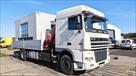 Camion Marque : Daf type: XF 85.430 puissance :430 Année : 2005 Km : 703 000 kms Boite de vitesse :16 vitesse manuel zf Nombre Essieux 4X2 Suspension : acier air/air Grue Marque : FASSI Type de grue : 320 Année : 2005 Radio commande : oui Nombre de stabilisateurs : 4 Position grue : arrière cabine Nombre dextensions : 5 Longueur Max : 14,6m Crochet: oui Cabine Pare soleil : oui Climatisation : Contrôle anti patinage : oui Blocage de différentiel : oui Radio cd : oui Chassis PV net : 14T980 CHARGE UTILE 4000KG Attelage remorque : oui Superstructure Marque : Plateau extensible Dimension: 6,4 x 2,45 x 0,6 m + Extension 1,5m Entretient: Révision de la grue Révision du camion (vidange moteur boite pont) Passage aux mines Contrôle de grue