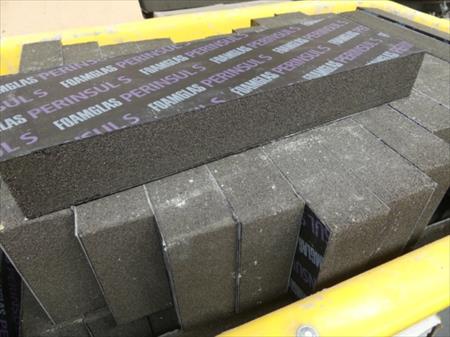 Bloc d'isolation en mousse de verre Marque : Foamglas Modèle : Perinsul S Quantités et dimensions : 28 blocs de 45 cm x 19 cm x 5 cm 24 blocs de 45 cm x 24 cm x 5 cm 10 blocs de 45 cm x 30 cm x 5 cm 28 blocs de 45 cm x 15 cm x 5 cm Lot réparti sur une palette