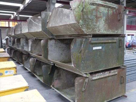 Bac acier pour grue Longueur : 170 cm Largeur : 145 cm Hauteur : 85 cm Quantité : 3 Photos non contractuelles Remarques : Présences d'oxydation, coups et griffes éventuelles