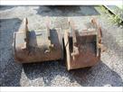 Vendue avec deux godets, dimensions 48,5x90x75 et 76x80x60. Le bac se trouvant sur la grue