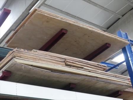Panneaux de bois Quantité : 150 Composition : +/- 25 panneaux MDF de 305 cm x 122 cm +/- 25 panneaux multiplex de 250 cm x 125 cm 7 panneaux multiplex de 305 cm x 150 cm 12 panneaux MDF de 305 cm x 122 cm 80 panneaux Unalit 244 cm x 122 cm + autres chutes Lot réparti sur 8 paquets
