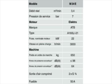 Moteur : ATB A160L/-21, puissance nominale moteur de 22kW, vitesse à pleine charge de 3000 tour/min