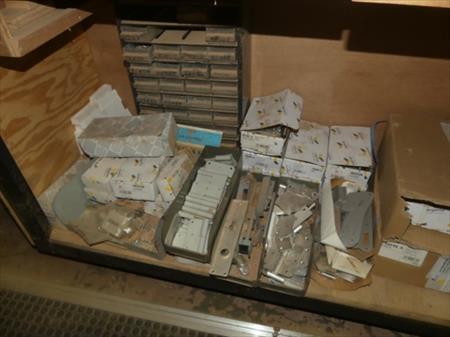 Armoire avec quincaillerie pour portes/fenêtre Longueur : 204 cm Largeur : 103 cm Hauteur : 103 cm Non inclus : le lot au-dessus de l'armoire Serrure, pommelle, cross, ...