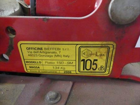 Tondeuse à gazon sur châssis 3 points Marque : Gianni Ferrari Modèle : Piatto 150-SM Année : 2006 Longueur : 120 cm Largeur : 170 cm Hauteur : 35 cm Poids : 134 kg Largeur de travail : 170 cm Etat : Non testé