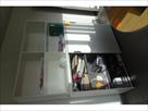 MEUBLE DE BUREAU BLANC AVEC 2 PORTES COULISSANTES ET 4 COMPARTIMENTS ÉTAGÈRES