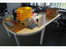 Carré Bureau, cadre en métal blanc, travail en bois naturel lame, avec la cavité et V/V hémisphère réunion de lîle