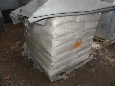 Sac d'enduit de finition murs intérieurs Marque : Siniat Lafarge Longueur : 120 cm Largeur : 80 cm Hauteur : 120 cm Quantité : 35 Etat : Matériel neuf Lot réparti sur une palette