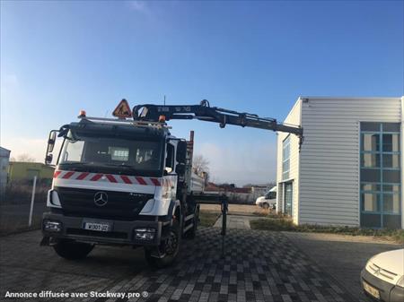 Marque : MERCEDES type: AXOR 1833 Année : 2010 Km : 256 000 kms Boite de vitesse : manuelle Nombre Essieux :4X2 EMPATTEMENT : 480 CMS EURO 5 RALENTISSEUR : OUI SUR ECHAPEMENT Grue Marque : HIAB 122 B-2 Radio commande : OUI Rotoe : OUI Nombre de stabilisateurs : 2 Position grue : arrière cabine Longueur Max : 8m CHARGE 1300 KGS À 8M Chassis BI BENNE - GRUE PTAC : 19t P.V. : 12T350 PTRA: 40T LONGUEUR DE LA BENNE : 4M80 Superstructure BI BENNE Entretien: Révision de la grue Révision du camion Passage aux mines Controle de grue
