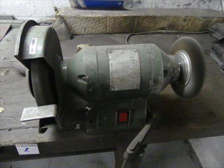 Seul le touret à meuler posé sur cet établi fait partie du lot.