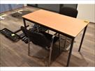 table, piétement métallique, tablette en bois, 60 x 120 cm