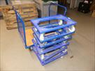 Chariot de manutention lourd Longueur : 105 cm Largeur : 70 cm Hauteur : 97 cm Chariot cadre à roulettes pour caisses Longueur : 62 cm Largeur : 42 cm Quantité : 6 Capacité : 250 kg