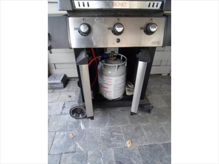 Barbecue au gaz 3 brûleurs Marque : Broil King Dimensions : Longueur : 1m60 Largeur : 65cm Hauteur : 1m25 Dimensions cuisson 65 x 38 cm Bâche de protection, bonbonne, tuyaux et détendeur compris