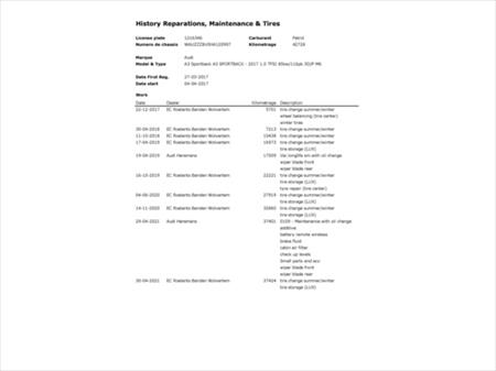 04-2021 à 37.401 KM : Grand Entretien réalisé chez Audi + Pile télécommande + Balai d'essuie-glace avant et arrière.