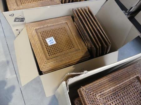 Sous assiette cannage Longueur : 32 cm Largeur : 32 cm Hauteur : 3 cm Quantité : 52 Etat : Matériel neuf