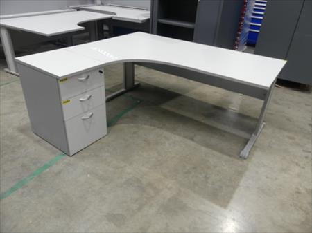 Bureau en L avec bloc tiroirs à gauche