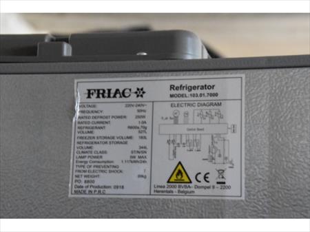 Frigo-surgélateur combinaison, marque FRIAC, modèle 103.01.7000, inox look, casquette. = 344l frigo et 183l surgélateur, BJ. 09/2018