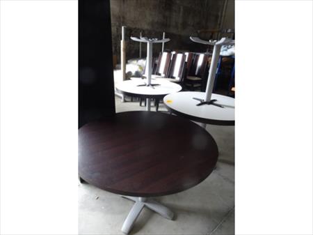 5 TABLES RONDS SUR EN MÉTAL GRIS CROIX PIEDS AVEC DESSUS EN BOIS BRUN FONCÉ