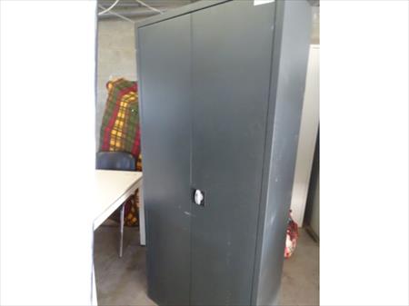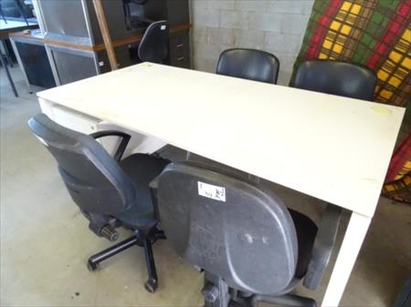 1 BUREAU 2 TIROIRS, 2 PORTE-MANTEAUX, 2 CHAISES À ROULETTES, 2 CHAISES DE BUREAU, 1 ARMOIRE 2 PORTES