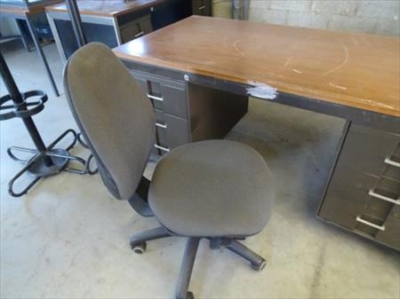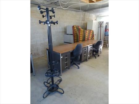 2 BUREAUX 4 TIROIRS, 2 CHAISES À ROULETTES, 2 PORTE-MANTEAUX