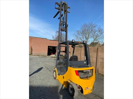 Chariot élévateur 2,5tonnesJungheinrich DFG425s DIESEL de 2012. SEULEMENT 2666 heures.Moteur Volkswagen 2.0L.Bon état général.Mat triplex hauteur maximale 4,4 mètres.Translation latérale hydraulique des fourches.