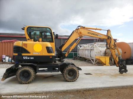 MINI PELLE HYUNDAI R55W-9A - FLECHE MONOBLOC - BALANCIER 1.90M - DEPORT PIED DE FLECHE - LAME ARRIERE - CLAPET DE SECURITE SUR VERIN DE FLECHE ET BALANCIER - LIGNE BRH SIMPLE EFFET COMMANDE MANIPULATEUR - LIGNE PETIT DEBIT DOUBLE EFFET COMMANDE PEDIBULATEUR - CAMERA ARRIERE - GRAISSAGE CENTRALISE - PNEUS 12*16.5 BON A 50% - COUPLEUR HYDRAULIQUE POWERTILT GEITH - 3 GODETS ( 450 / 600 / 1400 ) - MACHINE EN BON ETAT - ENTRETIEN PREVU POUR LA VENTE.