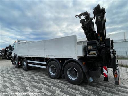 SCANIA P380 - 8X4 27/03/2008 EURO 4 GRUE HIAB 377 ARRIERE PLATEAU 302000KMS Marque : SCANIA type: P380 puissance :380cv Année : 2008 Km : 302 000km Boite de vitesse : Manuelle Nombre Essieux :8x4 EURO 4 Grue Marque: HIAB Model: 377-E5 Longueur : 13.7 (2T320 au bout) Nombre extension : 5 Radio commande oui Rotor: oui Cabine Pare soleil : oui Contrôle anti patinage : oui Blocage de différentiel : oui Radio cd : oui Chassis Ptac : 32t P.V: 9,9T Empattement 1-3 5m75 1-4 7m1 Superstructure Marque PLATEAU Dimension :6,6 X 2,50 - GARDE AU SOL 1M Révision du camion (vidange moteur boite pont) Passage aux mines