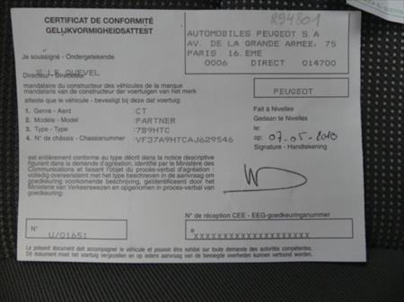 Certificat d'immatriculation Volet 1 : Oui