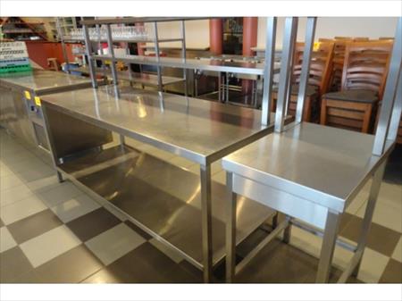 Inox table de travail avec paroi étagères et le bas étagère dimensions : L200xB80xH85 cm + inox table de travail avec planche à paroi