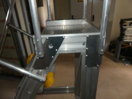 Escabeau fixe, équipé avec 2 roulettes de déplacement.