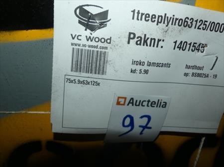 Chevrons en IROKO Longueur : 590 cm Largeur : 63 mm Hauteur : 125 mm Quantité : 75 Lot réparti sur un paquet