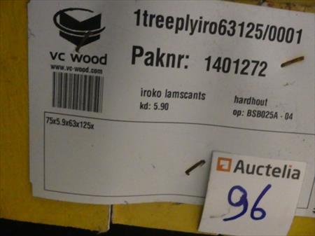 Chevrons en IROKO Longueur : 590 cm Largeur : 63 mm Hauteur : 125 mm Quantité : 75 Lot réparti sur un paquet