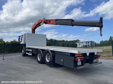 Renault Lander 320.26 Dxi 05/05/2009 485200 Kms Puissance: 320 Cv Norme Euro 4 Carrosserie: Plateau Grue Plateau: 6.93 x 2.42 Plancher omega Grue Palfinger PK 18500 Radio Commande 2 rallonges hydraulique Blocage différentiel Cabine courte Boîte mécanique Visière Le Moteur est refais à 429000 Km ( Facture à l'appui )